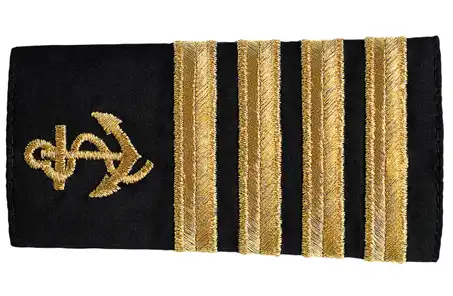 Typically, epaulettes feature stripes, bars, or symbols in gold or silver on a dark background colour, with the number and style of these markings indicating the wearer’s position, from junior deckhands up to the captain.